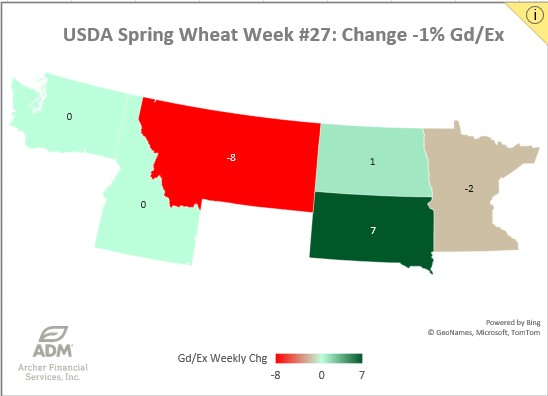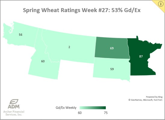 Spring Wheat Crop Conditions (53% Gd/Ex -1% Change)