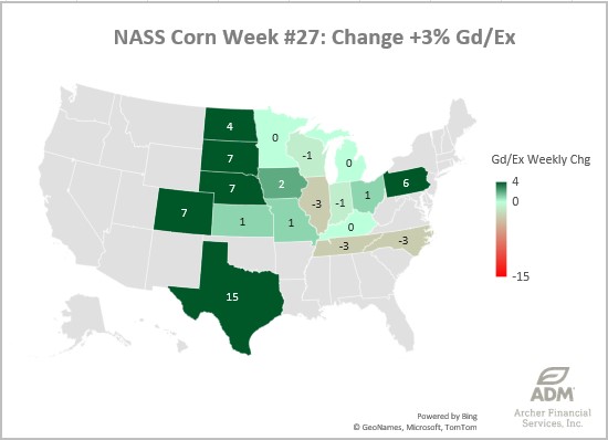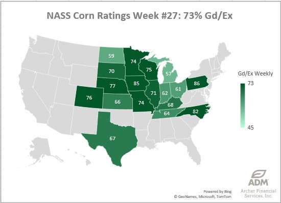Corn Crop Conditions (73% Gd/Ex +3% Change)