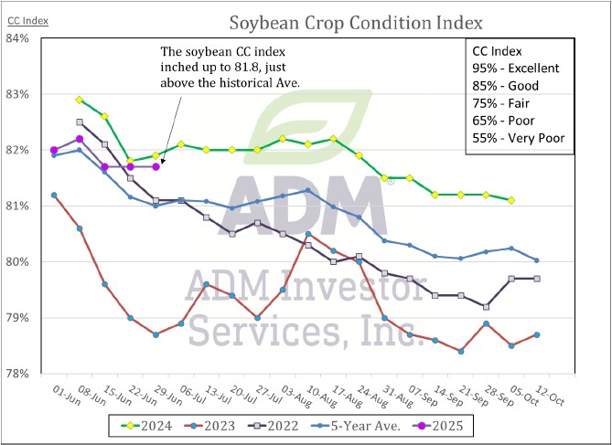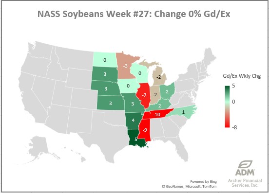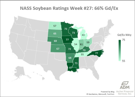 Soybean Crop Conditions (66% Gd/Ex, Unchanged)