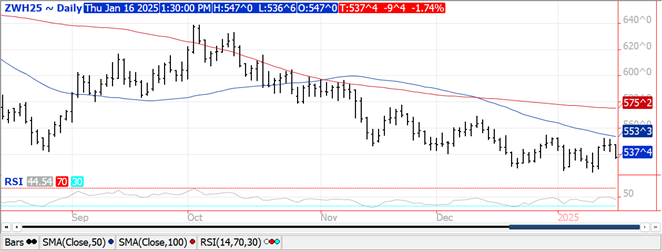 Prices were $.03-$.04 lower however both Sept-24 and Dec-24 held support above their recent lows. Spreads continue to carve out new lows. A non-threatening US weather forecast along with growing supply pressure continues to weigh on commodity valuations. Strategie Grain lowered their EU corn production forecast 2 mmt to 60 mmt, vs. the USDA forecast in July of 64 mmt. Exports at 29 mil. bu. (19 mil. – 23/24 MY, 10 – 24/25) were at the low end of expectations. Old crop commitments are up 38% from YA vs. the USDA forecast of up 34%. Current commitments represent 98.5% of the USDA forecast in line with the historical average. Shipments are up 34%. Mexico was a noted buyer of old crop with 12 mil. bu. however cancelled 2.5 mil. new crop. New crop sales at 230 mil. bu. are the lowest since 2019.