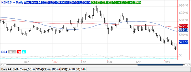 Prices dropped $.05-$.06 today while spreads were little changed. Mch-25 carved out a new low for the week with next support at the 50 day MA, currently $4.34. The USDA announced the sale of 135k mt (5.3 mil. bu.) of corn to Colombia. Ethanol production rebounded to 1,103 tbd, or 324 mil. gallons, up from 317 mil. the previous week and up 2.3% from YA. Production was above expectations and above the pace needed to reach the USDA corn usage est. of 5.50 bil. bu. There was 111 mil. bu. used, or 15.9 mil. bu. per day, well above the 15.0 mbd needed to reach the USDA. In the MY to date there has been 1.589 bil. bu. used, or 15.28 mbd, an annualized pace of 5.578 bil. Chinese customs data showed corn imports in Nov-24 at only 300k tons, down 92% from Nov-23. Ethanol stocks were stable at 22.64 mil. barrels, below the 22.9 mb from YA, and below expectations. Production rates have remained elevated despite a pullback in margins. Implied gasoline usage rose 1.3% LW to 8.927 mbd and was up 2% YOY. Chinese customs data showed corn imports in Nov-24 at only 300k tons, down 92% from Nov-23. In the first 11 months of the year their imports have reached only 13.3 mil. tons, down 40% YOY. Export sales tomorrow are expected to range from 30-60 mil. bu.