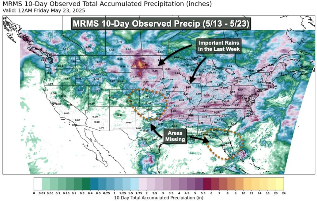 Prices were able to close higher across the complex in 2 sided trade.  Beans were $.02-$.04 higher, meal was up $1-$2, while oil was 20-30 better.  Mch-25 soybeans for now rejected trade back above $10 and its 50 day MA.  Support below the market is at LW’s low at $9.71 ¾.  Mch-25 oil consolidated above $.40 lbs. however within Friday’s range.  Prices found support on the announced sale of 28k tons of bean oil to India.  After trading to a 2 month high, Mch-25 meal backed up close to its 100 day MA support.  Spot board crush margins improved $.04 to $1.20 ½ as bean oil PV held steady just below 40%.  Frequent rain activity will continue for most of Brazil’s central and northern growing regions.  Heavy rains in Eastern Mato Grosso, Goias, into Minas Gerais may generate isolated flooding.  In the US precipitation over the next week will favor the central Midwest.  Little moisture is offered for the NC Midwest along with the Southern plains.  Temperatures will quickly shift to a below normal pattern for the New Year.  Export inspections at 58 mil. bu. were in line with expectations. and well above the 19 mil. needed per week to reach the USDA export forecast of 1.825 bil. bu.  Last week’s inspections were revised up by 1 mil. bu. bringing YTD inspections to 1.057 bil. up 23% from YA vs. USDA forecast of up 8%.  China took 28 mil. with 8 mil. going to Egypt.  The BAGE lowered their Argentine soybean acreage forecast .2 mil. HA to 18.4 mil. HA’s (45.5 mil. acres).  Plantings are 85% complete, vs. 77% the previous week.