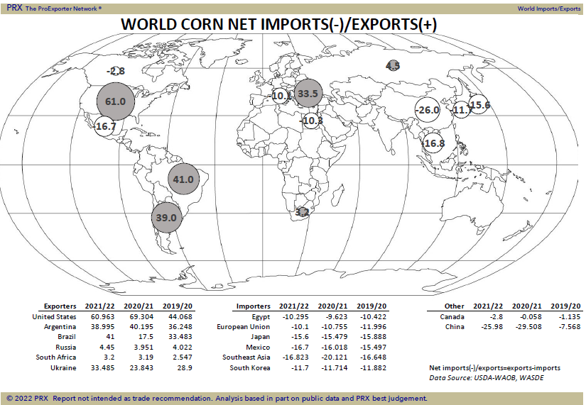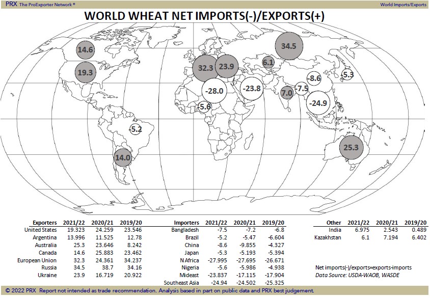 all wheat futures are overpriced. Wheat futures are lower due to low weekly US exports and talk cold US weather may not have hurt the US HRW crop. Weekly US exports were only 5 mil bu vs 10 last week and 17 last year. Season to date exports were 444 mil bu vs 551 last year. USDA goal is 840 vs 992 ly. US S Plains weekend precip was less than forecasted. Recent WH high 8.24, KWH 8.72, MWH 10.36. Higher S Hemisphere supply is negative. Russia may not export 36 mmt wheat. World demand could increase 5-7 mmt, 2021 stocks could drop 10 mmt thus 2022 N Hemisphere must increase 15-20 mmt to help increase export supply limit price gain.