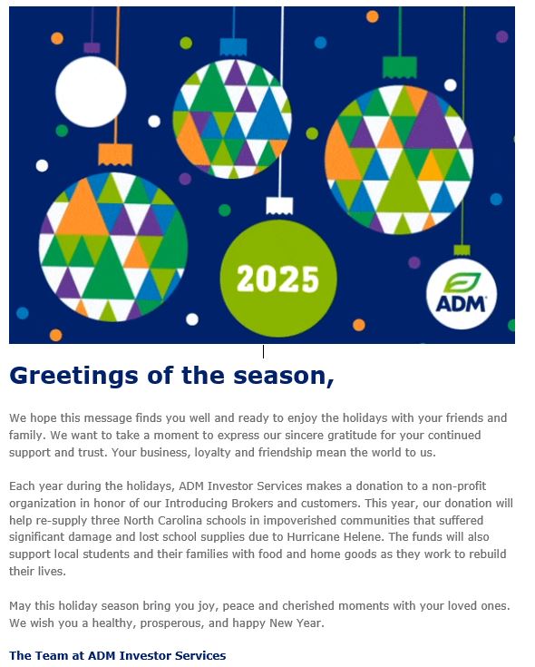 Futures and options trading involve significant risk of loss and may not be suitable for everyone. Therefore, carefully consider whether such trading is suitable for you in light of your financial condition. The information and comments contained herein is provided by ADMIS and in no way should be construed to be information provided by ADM. The author of this report did not have a financial interest in any of the contracts discussed in this report at the time the report was prepared. The information provided is designed to assist in your analysis and evaluation of the futures and options markets. However, any decisions you may make to buy, sell or hold a futures or options position on such research are entirely your own and not in any way deemed to be endorsed by or attributed to ADMIS. Copyright ADM Investor Services, Inc.