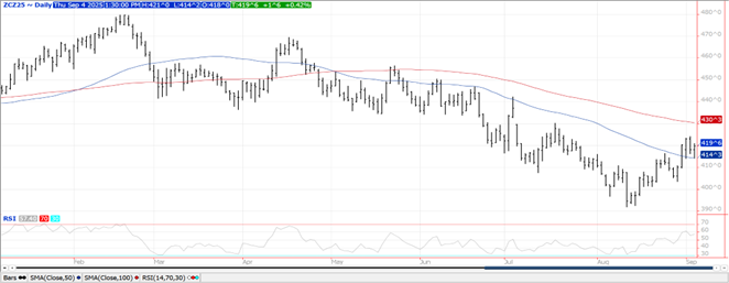 Prices were mixed and little changed today as beans settled within $.01 of unchanged, meal was down $1-$2 while oil rebounded closing 40-50 better. Spreads were in beans, firmer in meal while weaker in oil. Support for May-25 beans rests at LW’s low at $9.94. Early strength in meal was capped at the 50 day MA at $307.60. Spot board crush margins improved $.02 ½ to $1.17 per bu. while bean oil PV bumped up to 40.9%. Net drying will occur across much of Argentina, Paraguay and southern Brazil this week with better prospects for rain in week 2. The net drying will aid harvest efforts in Argentina. Export inspections at 24 mil. bu. were in line with expectations and above the 9 mil. needed per week to reach the USDA forecast of 1.825 bil. bu. YTD inspections at 1.437 bil. are up 9% from YA vs. USDA forecast of up 8%. China took just over 15 mil. Last week MM’s were net buyers of 20k beans, and just over 13k meal while selling 23.5k contracts of bean oil. They remain net short across the soybean complex with their short bean position down to 15.5k, nearly 14k in bean oil and down to 72k in meal. AgRural reports Brazil’s soybean harvest is 70% complete, up from 61% LW and ahead of the YA pace of 63%. NOPA crush in Feb-25 at only 177.9 mil. bu. was below the range of estimates. This compares to Jan-25 crush of 200.4 mil. and 186.2 mil. from Feb-24. Despite the much lower than expected crush, bean oil stocks rose to an 8 month high at of 1.503 bil. lbs. up 18% from Jan-25 however still below the 1.690 bil. lbs. from Feb-24. The Ave. estimate was for inventories to increase to 1.386 bil. Lbs.