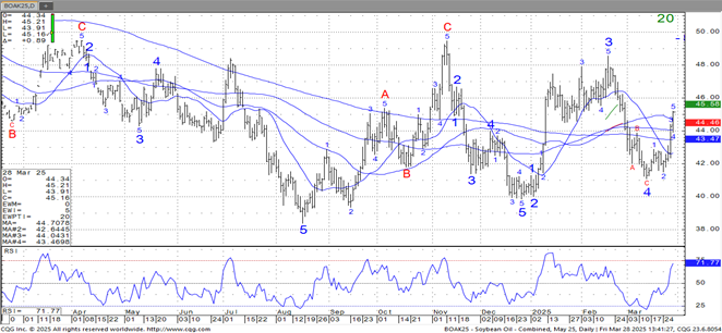 Soybean futures had a late rally with SK ending near 10.22. Soyoil is higher and near 45.23 cents on talk tariffs could reduce China export of UCO to US and Canada exports of canola oil to US. Ag lobbyist also trying to get US to increase biofuel subsidies. Season to date soybean export commit is near 1,681 mil bu vs 1,482 last year. USDA goal is 1,825 vs 1,695 ly. Some could see SN above 10.50 if US soybean acres are 4-5 million less than last year. Some could see US 2024/25 corn carryout up 20 mil bu from USDA. Same group est US 2025/26 soybean carryout at 625