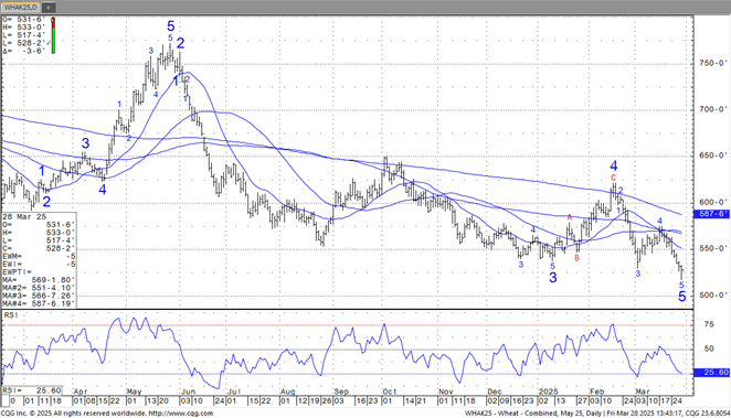 WK was down to 5.17 on forecast of needed rains in Ukraine, Russia and US plains. Our weather guy said wet EU US plains forecast is too wet. Season to date US wheat export commit is near 767 mil bu vs 688 last year. USDA goal is 835 vs 707 ly. Slow World wheat import buying is increase stocks despite lower Russia and EU 2025 crops. Next week, USDA is expected to show US March 1 stocks higher than last yea