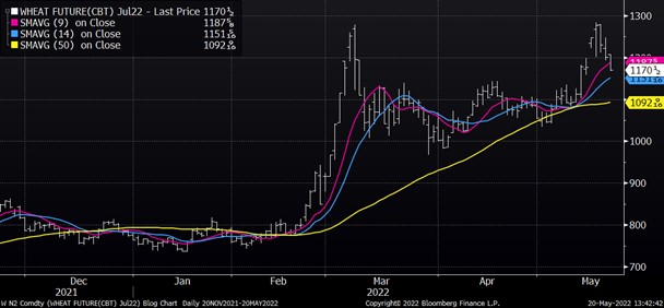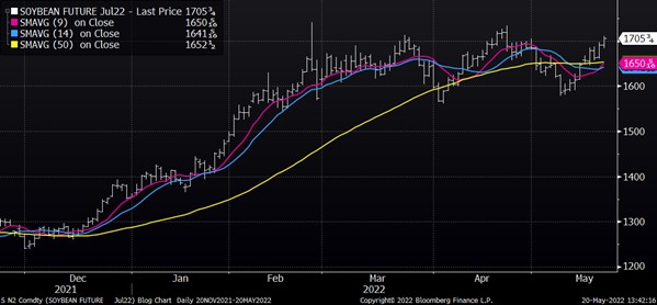 July soybeans closed moderately higher on the session today and have now closed higher for 8 of the past 9 trading sessions. Strong demand has helped support the higher market and the buying pushed the market up to the highest level since April 22. Both meal and oil are trading higher on the day. US cash market remains firm as crush margins are strong.