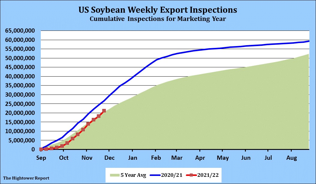 Soybean traded lower. Soybean market is seeing new selling on concern about slowing US soybean export demand and favorable South America weather. Brazil soybean plantings are done and some could see new crop Brazil soybeans for export in January. Brazil is also offering Soymeal for export at a discount to US. Weekly US soybean exports were near 78 mil bu vs 89 last year. Season to date exports are near 776 mil bu vs 1,002 last year. USDA revised last week’s US soybean export 27 mil bu. Some forecast China December all origin soybean imports could be near 11 mmt. Most could see USDA drop US exports 100 mil bu and raise carryout to near 440. Bulls need a South America weather problem for prices to rally.