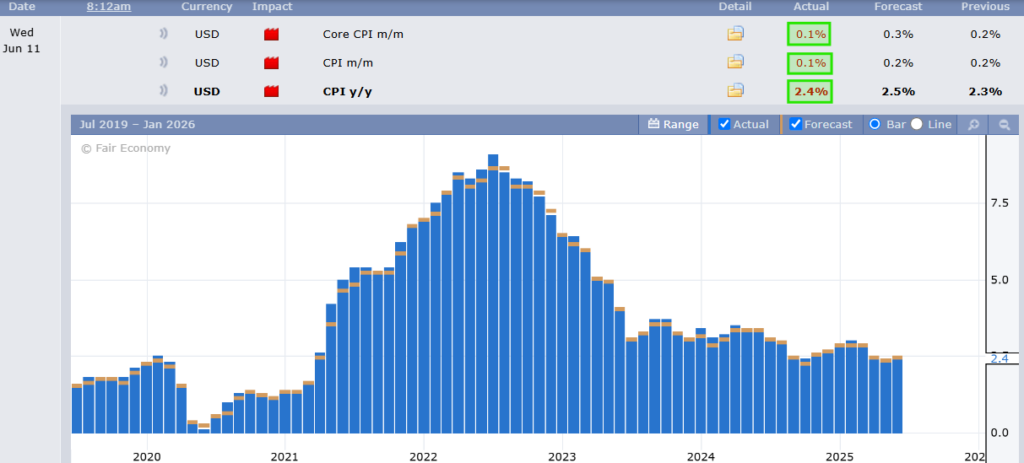 The Consumer Price Index reported lower than expected increase to consumer prices for the month of May. This is the 4th month in a row that core CPI has come in below expectations, meaning prices are not increasing at the expected rate for consumers.