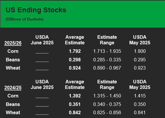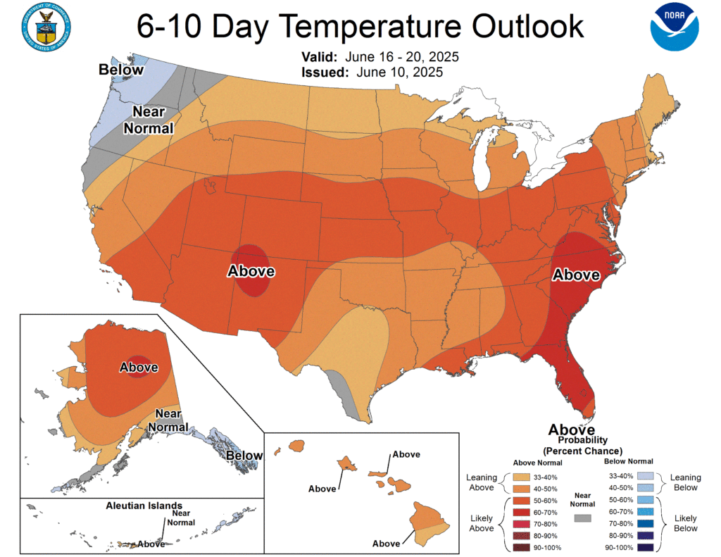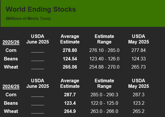 Some rain was pulled out of thee forecast for the next 7 days, but most of the US growing regions will still see 100% of normal rainfall in the next week. Iowa is one of the regions that precip was taken out of the week forecast. If it’s a June weather rally you want, you’ve came to the wrong year. It seems progress was made between China and the US in their most recent sit down in London. The 10% tariffs on US goods entering China and the 55% tariffs on Chinese goods entering the US will remain in place. Chinese students studying in the US will keep their visas and China is expected to resume exporting rare earth metals to the US. It seems the deal is not signed by both parties yet, but President Trump said it is “done” on a truth social post this morning.
