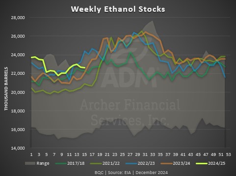 Ethanol Stocks were basically unchanged at 22.64 million barrels. This was below expectations. Seems ethanol production is not phased by tighter margins.