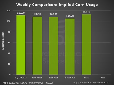 Corn Usage was up last week by 2.52 million bushels from the week prior. Still below the record highs in December of 2017.