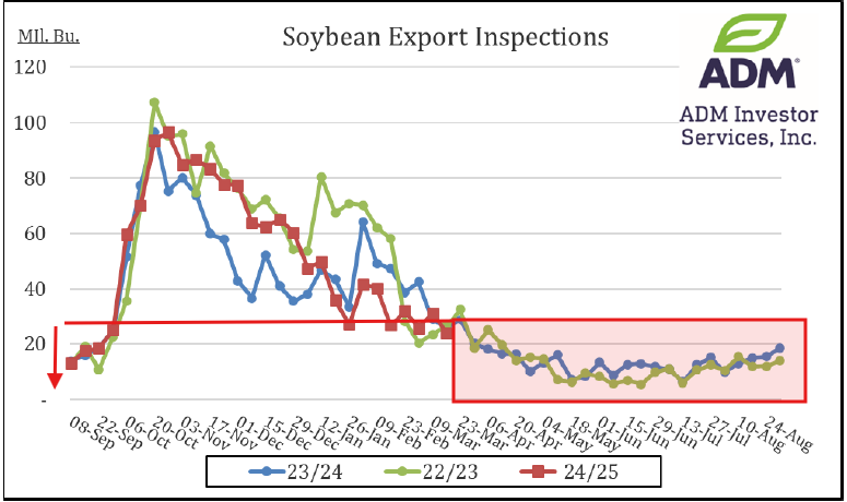 US Soybean Export Inspections: With Brazil over 75% harvested at this point, the window has closed to see any sort of Chinese buying spree.