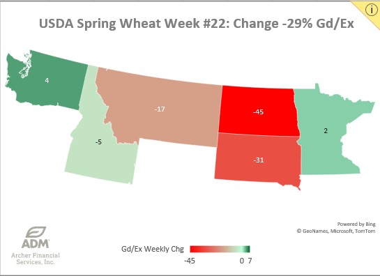 Spring Wheat Crop Conditions: 45% Good/Excellent. This time last year the USDA reported 74% g/e.