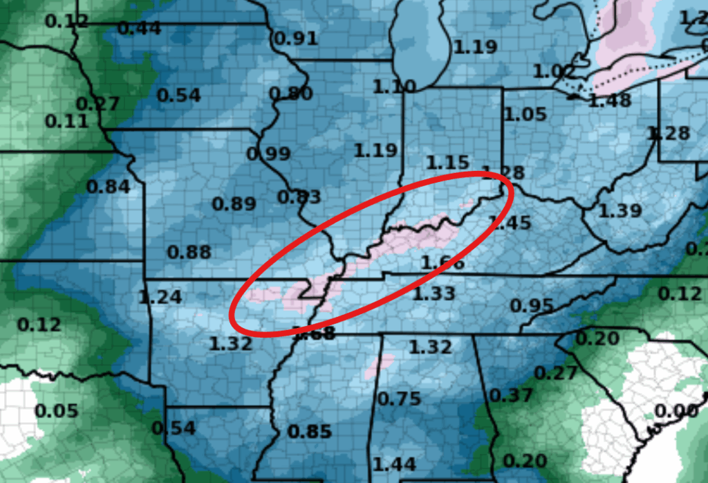Ohio River Getting 1-2 inches of Rain between now and Sunday evening. This should offer relief to the low water issue on the lower Mississippi, for now.
