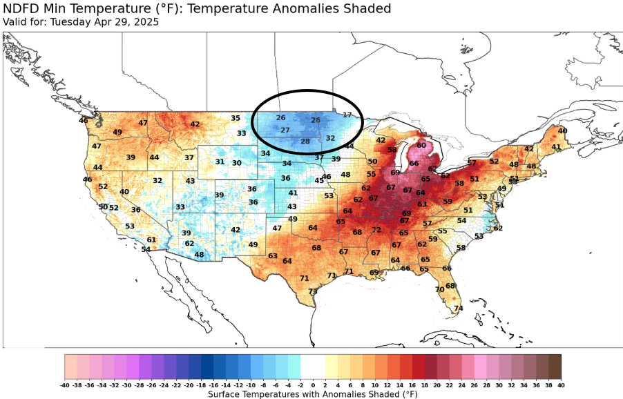 Areas at Risk of Frost on Tuesday. The rest of the week is warm enough o relieve concerns.