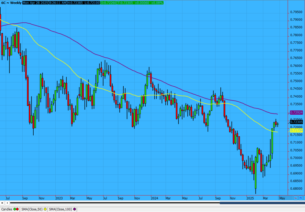 The Canadian Dollar is currently trading between the 50 and 100-day moving average.