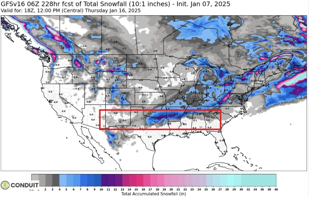 Southern Regions Expecting Snow are at risk of both transportation safety and power grid issues. When folks down there get snow fall their infrastructure causes logistical slowdowns and cancellations. I’m sure people are already making a run on the grocery stores today.