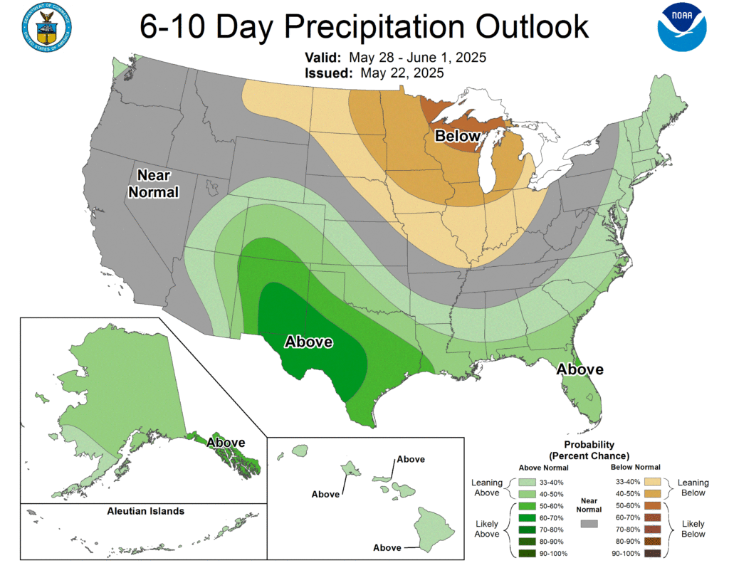 Grains are slumping into this Friday morning as rains covered most of the Midwest and will continue this weekend to soak the mid south and delta regions. Lower than normal temperatures in the northern growing regions are concerning those who have already planted most of their crop. Soil temps getting too low can cause issue with emergence next week. River levels are in good shape. We will have a first look at corn crop conditions on Monday’s crop progress report. I expect planting did not progress as much this last week and we’ll still have 10-15% left to plant for corn and 25% left on beans. Export sales are mixed, but mostly neutral to bullish. Corn continues to outperform on exports, but soybeans and soybean meal came in with higher than expected old crop exports. The CFTC Commitment of Traders will be out later this afternoon. Focus on if managed money has continues to widen their short position in both corn and wheat and possibly increase their soybean length.