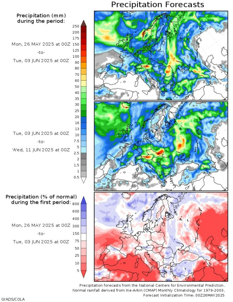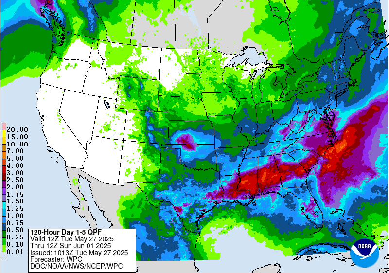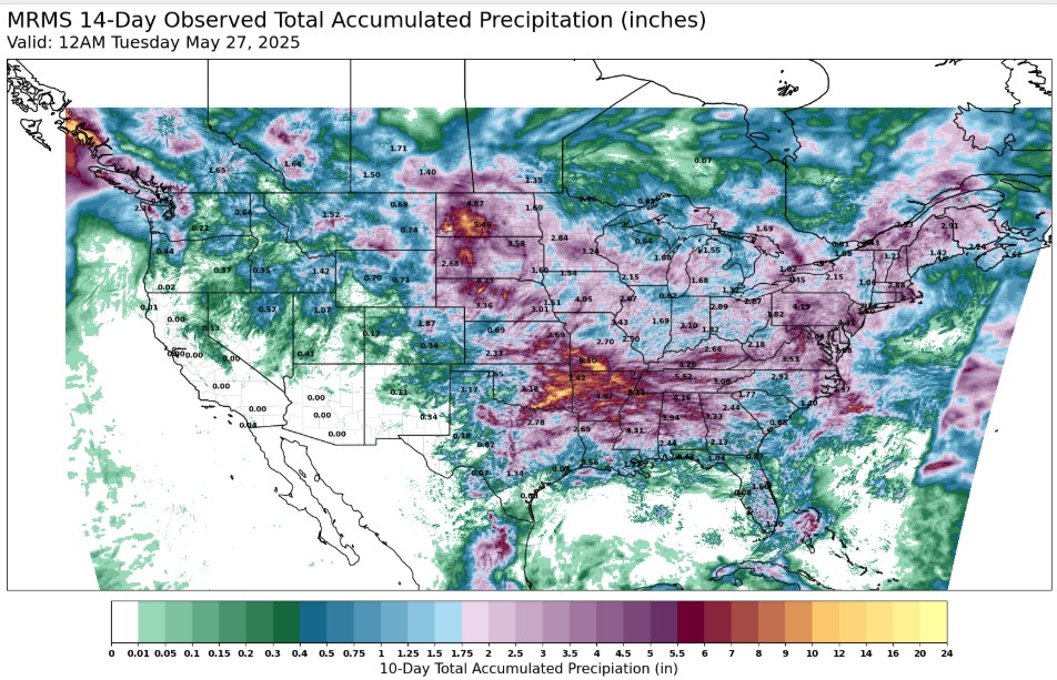 The Last 14 Days of Rain hit most of the US growing regions. Rain Makes grain despite the plating delays in some areas.