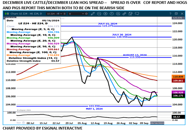 As of October 13, 2024 the Lean Hog Index is $4.92 over the October contract. There is plenty of time before expiration and the need to converge, but with the drop in the cash hog market and the lower pork carcass price, look for the further correction in the Index. As hogs move from summer weather into the cooler fall temperatures, carcass weights will improve.