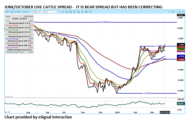 The strong demand for current cash cattle and higher prices paid this week likely do to the beef needs for next week’s Easter Holiday. Monday morning April could lose $1.50 to $2.50. June and August are already discounted but with big placements look for possible loss of $1.50 to $2.00