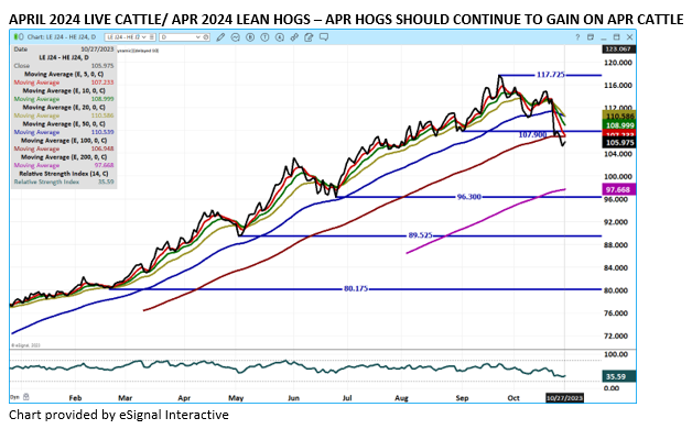 December Lean Hogs are discount to current cash and they are also bear spread to February and April. As equity funds roll out of out of December longs. There could be pressure of December and widening of bear spreads as traders buy February and April.
