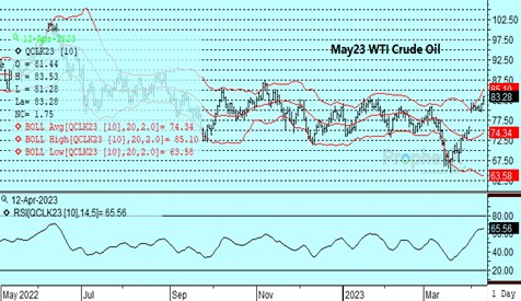 The petroleum complex continued to build on yesterday’s gains, with crude settling higher by 1.73 at 83.26. Gasoline and ULSD have lagged the move, with the May 2 oil crack trading near recent lows of 30.00 per barrel and the gasoline crack finding resistance at its recent highs near 38.00. Economic prospects for the US and China remain in focus. The slight cooling in the US CPI helped raise hope that the Fed might be approaching the end of its tightening cycle, with most participants expecting only a 25-basis point hike in fed funds followed by a pause and a potential soft landing for the US economy. A slowdown in consumer inflation in China to levels not seen since September of 2021 sparked concern that their recovery may not be as pronounced as previously expected. Providing support in the background are the OPEC production cuts. The EIA forecast that OPEC output will decline by 500 tb/d in 2023 and then rise by 1 mb/d in 2024 following the expiration of the OPEC+ output agreement. Non-OPEC production is expected to rise by 1.9 mb/d in 2023 and 1 mb/d in 2024.