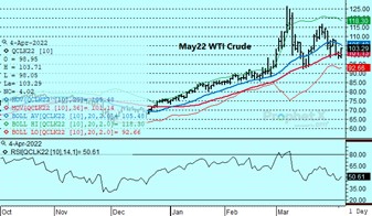 Offsetting these bearish forces on values remains the threat from additional sanctions to Russian exports to Europe. Allegations of heinous war crimes in Ukraine appear to be tilting European sentiment to additional sanctions and calls for an embargo on oil and nat gas. An embargo would likely underpin values but also the concurrent decline in economic activity that would result from a tightening in energy supplies would also undercut prospective increases in demand which might already be happening to some extent. In the background is the impact of the sanctions on Russian output levels. It was reported that in March Russian output levels fell to 11.01 mb from 11.06 in February. Reportedly on March 31, production had fallen to 10.6 mb, the lowest rate since September 2021. Cargo cancellations have likely caused additional shortfalls throughout April and into May with declines of as much as 1-1.5 mb/d likely if not potentially low. One needs to recognize that Russian exports to India and China have been unaffected so far and in fact those countries appear to be securing crude cargoes from Russia at discounted rates freeing up other unsanctioned origins to fill European needs.
