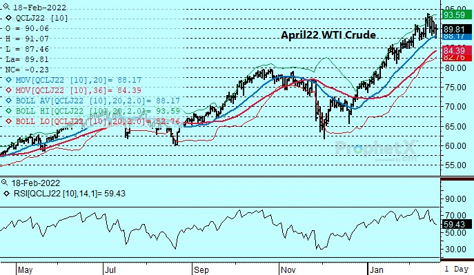 The petroleum complex continued to trade in an erratic fashion. Reports of progress in the Iranian negotiations and the scheduling of further talks next week with the Russian ambassador attracted early selling interest. Values found support near 87.50 basis April on pre-weekend short covering and scattered buying linked to ongoing concerns over Russian intentions and whether a visit by the Ukrainian President to Munich this weekend for security talks with Western powers will be able to take place given the political risks.