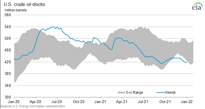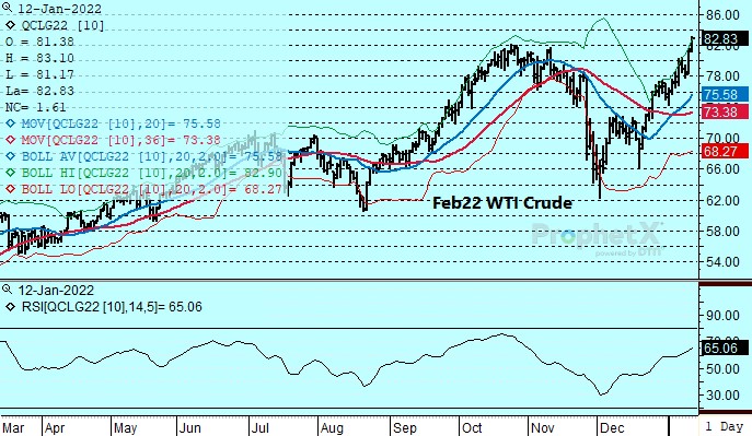 The petroleum complex maintained a firm tone on expectations of a quick return to normalcy following the large spike in Covid infections traced to Omicron. Additional support continues to be derived from a shortfall in OPEC production levels and uncertainty over whether future output increases, as specified in the OPEC+ agreement, will be attained.