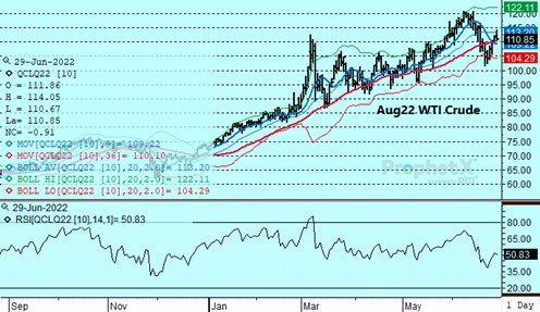 Values continue to be torn between supply and global economic concerns. US consumer confidence dropped to a 16-month low as inflation raised fears of a significant slowing in the economy and possibly push it into recession. This continues to be counterbalanced by supply side issues. Fears OPEC capacity is limited were buttressed by reports that the UAE leader had expressed concern to French President Macron that they are reaching the limits of their sustainable production capacity covering the next six months while the Saudi’s might be able to increase another 150 tb/d. These levels are far less than what many had expected, including this analyst. Ideas that Russian sanctions will only aggravate supply tightness in the months ahead remains in the background.