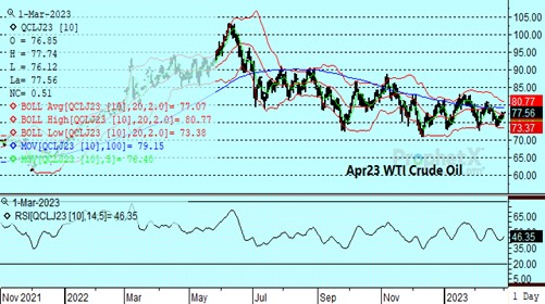 The petroleum complex continued to trade mixed, as early support developed on signs the Chinese economy is recovering following the release of their Purchasing Managers Index (PMI). The index rose to 52.6 in February, the highest level since April of 2012. The reaction to the news was muted by caution in advance of the DOE report after the API report showed a large 6.1 mb increase in crude inventories yesterday. The DOE report showed a stock increase of only 1.2 mb, and total stocks of crude and products falling by 3.0 mb. Although the report brought out some buying, it failed to be sustained as caution developed in response to reports that OPEC members increased their production by 150 tb/d in February. Nigeria showed the largest increase of 100 tb/d. Nevertheless,  OPEC+  is still producing as much as 875 tb/d below target.