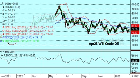 The petroleum complex traded in a volatile fashion, with values declining as much as 2 dollars in early trade before recovering strongly to finish higher by 1.52 per barrel in April WTI. The weakness was traced to a Wall Street Journal report outlining political tension between the UAE and Saudi Arabia over disagreements regarding negotiations with Yemen, OPEC oil policy, and competition for foreign investment and markets for oil. The report suggested UAE officials were having internal discussions about leaving OPEC due to their displeasure with having to produce at levels well below their sustainable capacity, and desire to produce more given their expansion in refining capacity and the export limits on the Soviets. The UAE denied the reports, which lead to short covering as the market switched focus back to signs that the Chinese economy is beginning a recovery and might record growth as high as 5 percent in 2023. Contributing to the strength were reports of a fire on a pipeline in Nigeria owned by Shell, raising concerns that it may impede their recent recovery in production.