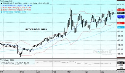 The petroleum complex traded to the upside with crude gaining 80 cents per barrel while ULSD was up 9 cents and gasoline higher by 4 cents basis July. The market appeared to lack fresh news as economic uncertainty continues to pose a bearish backdrop to values while prevailing stock levels offer support along with potential for additional tightness in Russian supplies. For the most part a pick-up in gasoline demand has been priced in, limiting strong movement in prices. The appearance that the EU will not phase in a full embargo of Russian oil has also softened longer term bullish sentiment.