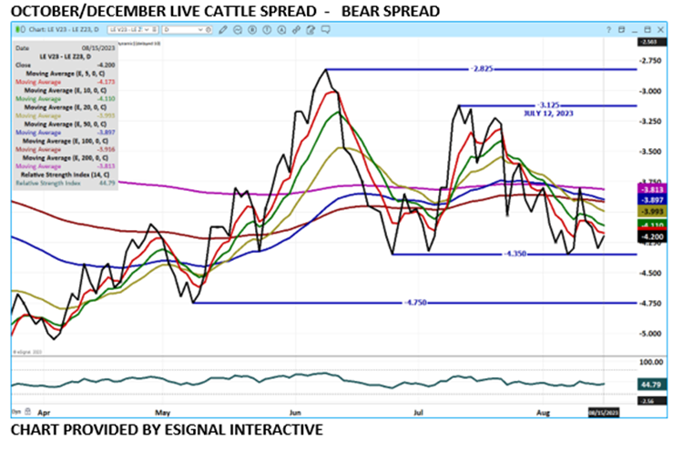 During June and July pork and hogs moved higher because pork was dirt cheap. Also, fund traders and big speculators were on the sidelines and no longer short hogs or having hogs the short legs of spreads. Now with the increasing hog slaughter, exports leveling out and retail beef prices down, pork hit a resistance. Loins and hams faltered at recent highs. Bellies have become volatile but bellies aren’t a major factor moving the carcass price when bellies are just 16.5% of the primal yield. Hams were higher Tuesday but when total movement on hams was 7.15 loads, when so few are for sale on the daily market, if a buyer needs hams, they must pay the price asked.