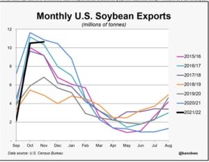 - SOYBEAN SALE: The U.S. Department of Agriculture confirmed private sales of 102,000 tonnes of U.S. soybeans to Mexico for delivery in the 2021/22 marketing year that began Sept. 1, 2021.