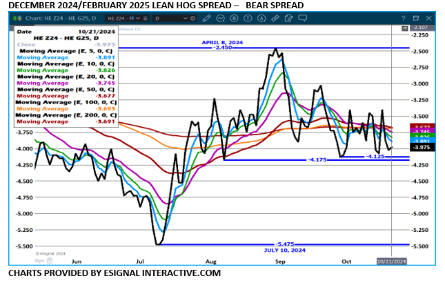 On light volume trade lean hogs were higher Monday with February 2025 through December 2025 making new contract highs.  Continued strong exports are the plus side for the market as more hogs are hitting kill.