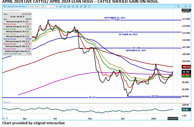 The COF report won’t do much to futures on Monday. There were no surprises. Traders will be trading the improving weather and seeing if packers push kill to make up slaughter because of the past week’s cold and snow. Beef prices will also move the market next week after the move up due to the weather market.