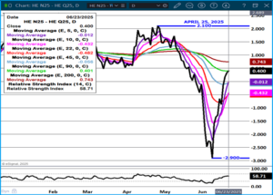 Pork prices continue to gain. The cutout strength is primarily from hams and bellies. Weights are staying the same as last week and just three pounds above last year at this time. Packers are profits up but on light daily movement as packers fill contract orders first. Traders are buying lean hogs against live cattle.