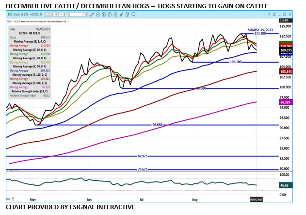 Trading was obviously spreaders on Tuesday. Spreaders dominated the market and throughout the day speculators were beginning to rollout of October Lean Hogs and buy Lean Hogs and sell Live Cattle. The pork carcass was up on early sales producing excitement for futures during trading hours.