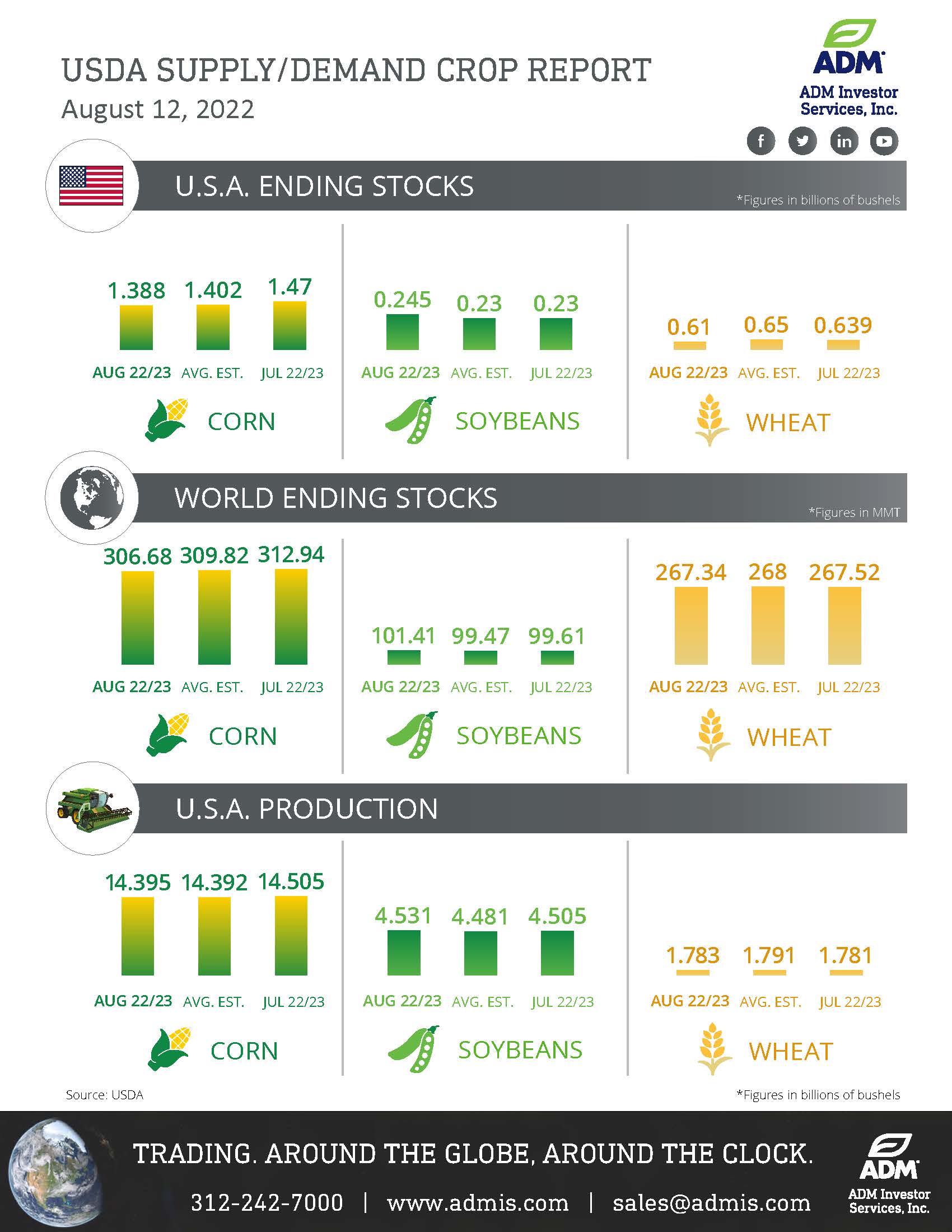 • USDA raised US soybean yield and World 2022/23 soybean end stocks higher than expected.